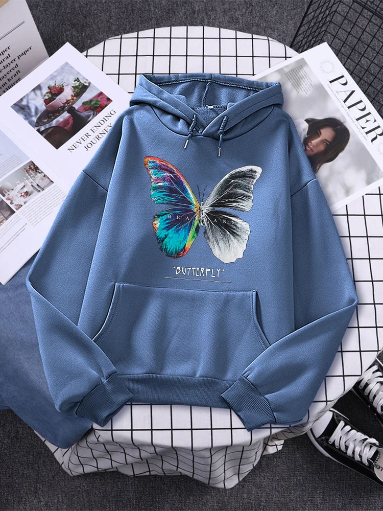 Womans Butterfly Colorful Half Black And White Prints Hoodies Women Tops Street Fashion Sweatshirt Autumn All-math Clothes Pullover