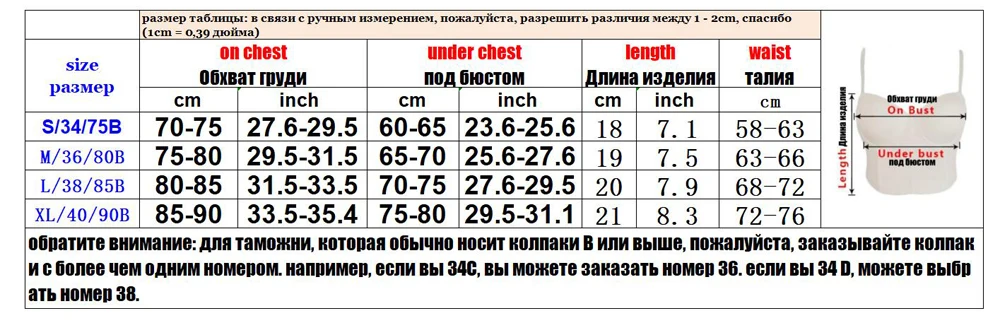 . Note: For customers who normally wear B cups or above, please order a size up. E.g. If you are 34C, order Medium, if you are 34D, Large fit better. Measurements please check our Size Chart on each color left picture. Please allow a 1-2cm difference due to measuring by hand, Thanks (1cm=0.39inch)